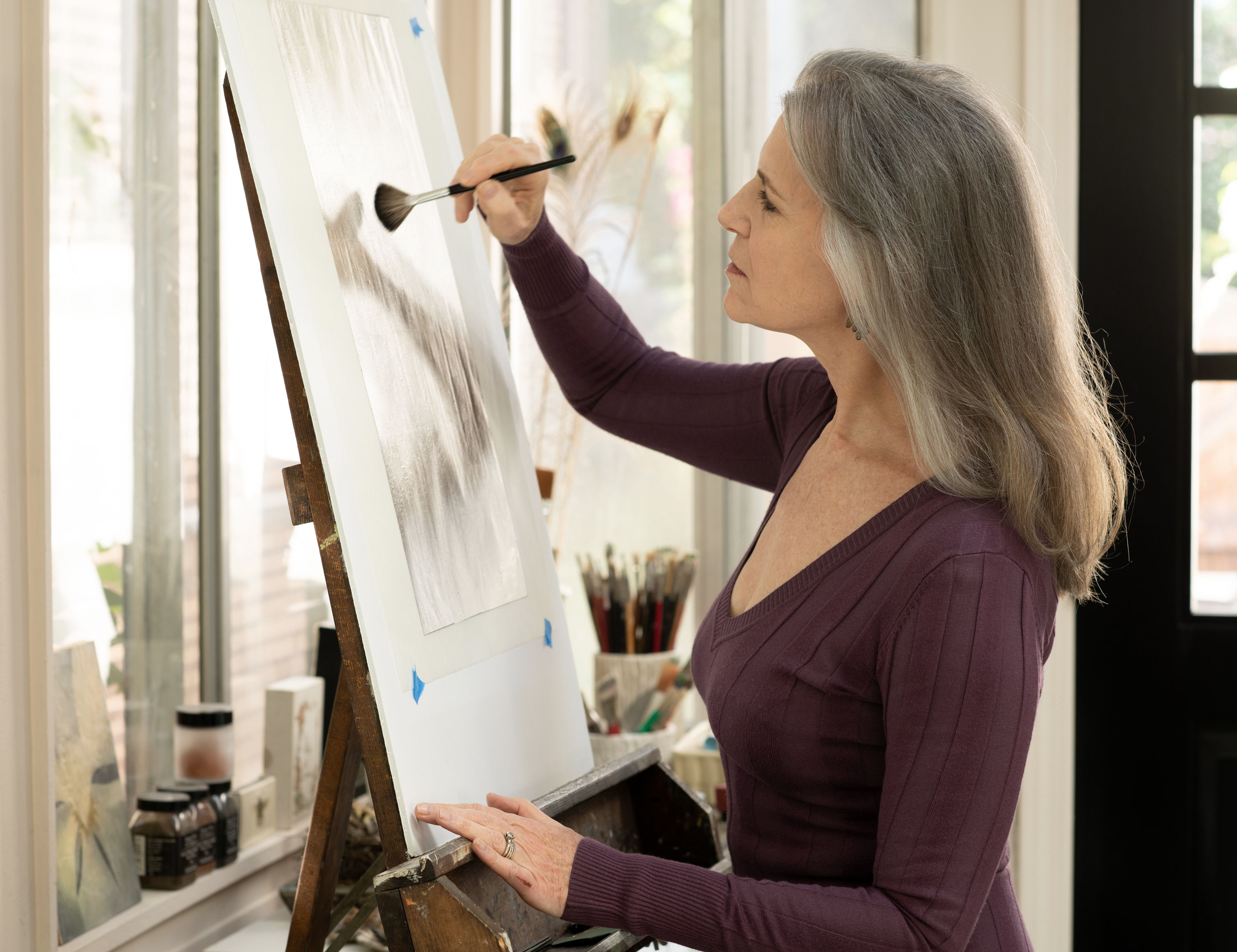 Born in Memphis, TN in 1955, Schneider grew up in a family of several generations of artists, later earning an AA in Art History from Stephens College and a BA in Painting from Newcomb College at Tulane University. Her interest in photography germinated in the early 1980s when using a camera to reference models for her oil paintings. Mesmerized by the possibilities of the photographic art form and the alchemy of the darkroom, yet missing the sensuousness of oils, Schneider began to layer oils on her photographs to manipulate the boundaries between the real and the imagined. This process laid the groundwork for the unique layering and gilding that later became the foundation of States of Grace.