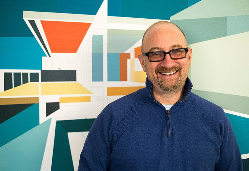 London-born artist Andy Burgess, currently residing in Tucson, Arizona, is known for his renditions of modernist and mid-century architecture, panoramic cityscape paintings, and elaborate mosaic-like collages made from collected vintage papers and ephemera. Lauded by Annabel Samspon, Deputy Editor of Tatler as “the next David Hockney”, Burgess continually expands his artistic vocabulary by mastering various media, most recently immersing himself in photography and printmaking.